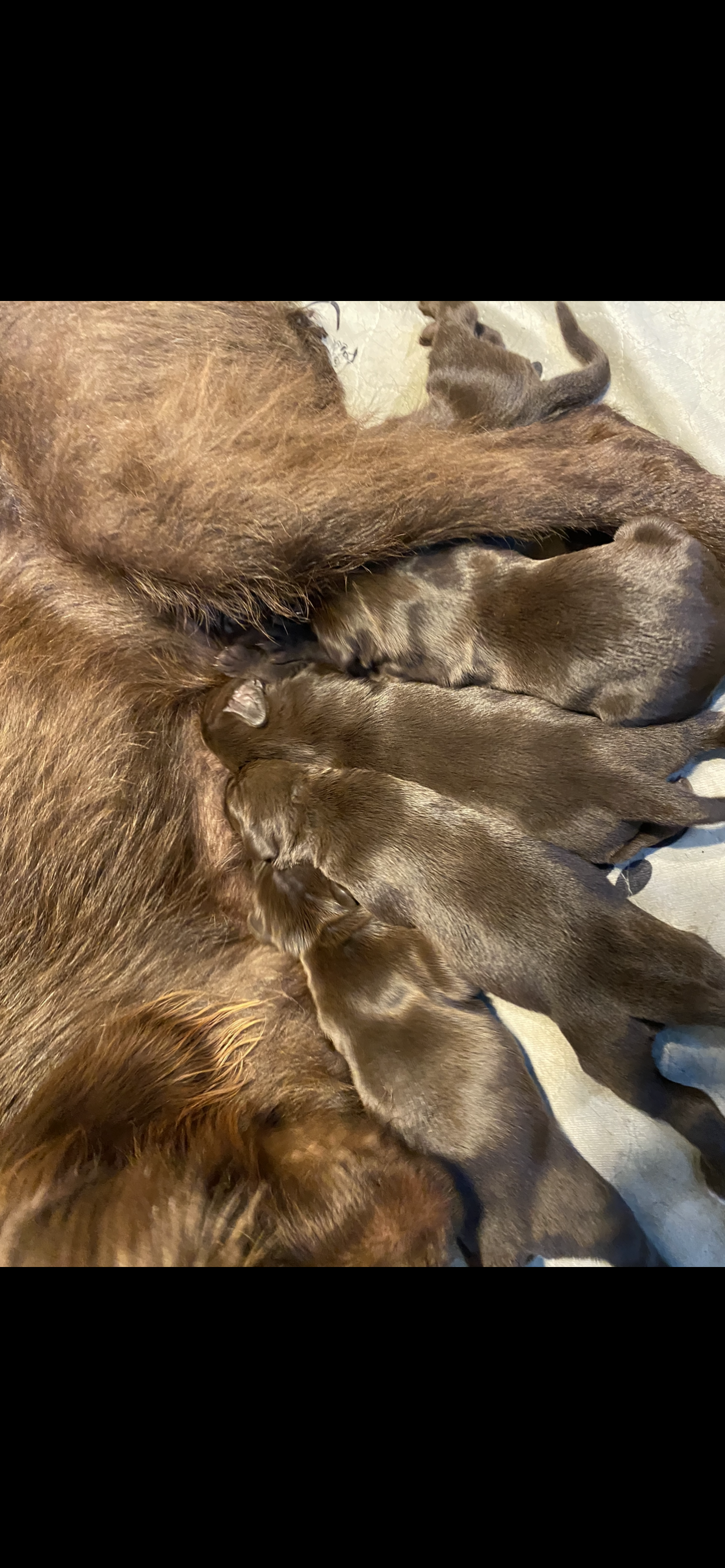 This Breeding will produce some great puppies. All pups are sure to have Furnishings and a mix of black and brown pups. These two dogs have the coat and temperament to spend the long cold fall/winter hunting whatever you desire. This will be our “B” litter.